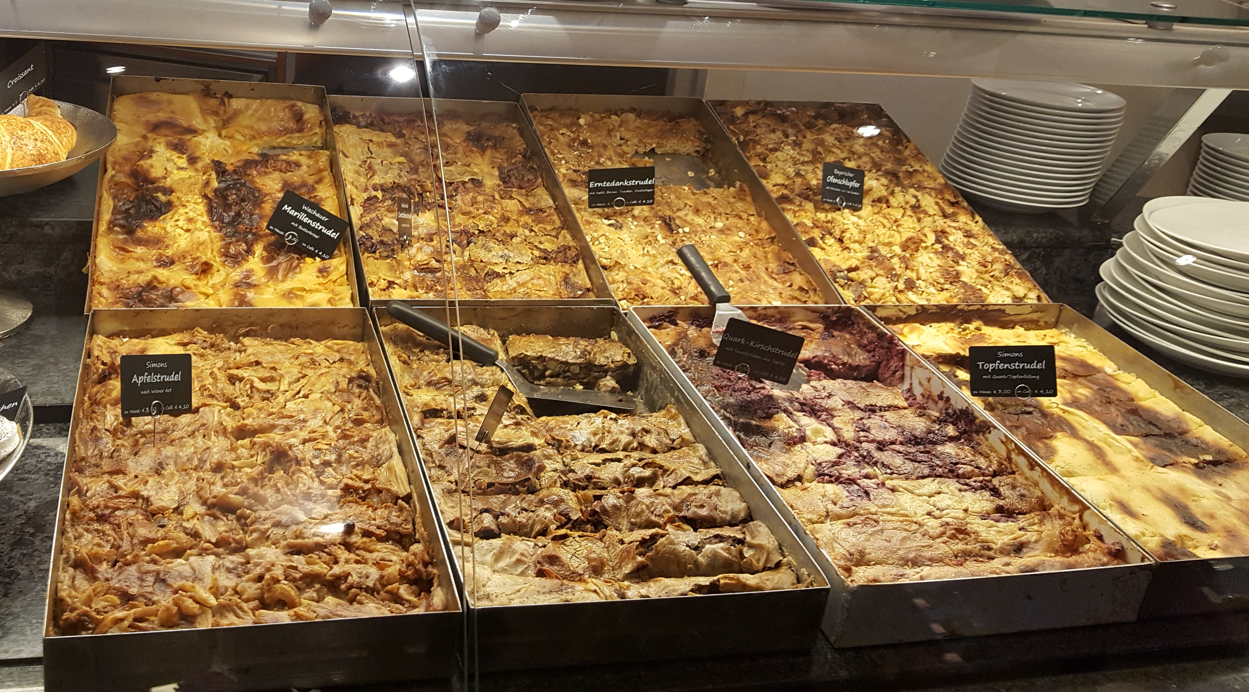 Back down through the town, we end at the square. We are on our own. Back into the historic district, we buy our Linzer torte. Back to the square we locate Keintzel for our Austrian lunch. Of course, we order Weiner Schnitzel. We had the best apple beer and topped it off with apple strudel. Yummy!