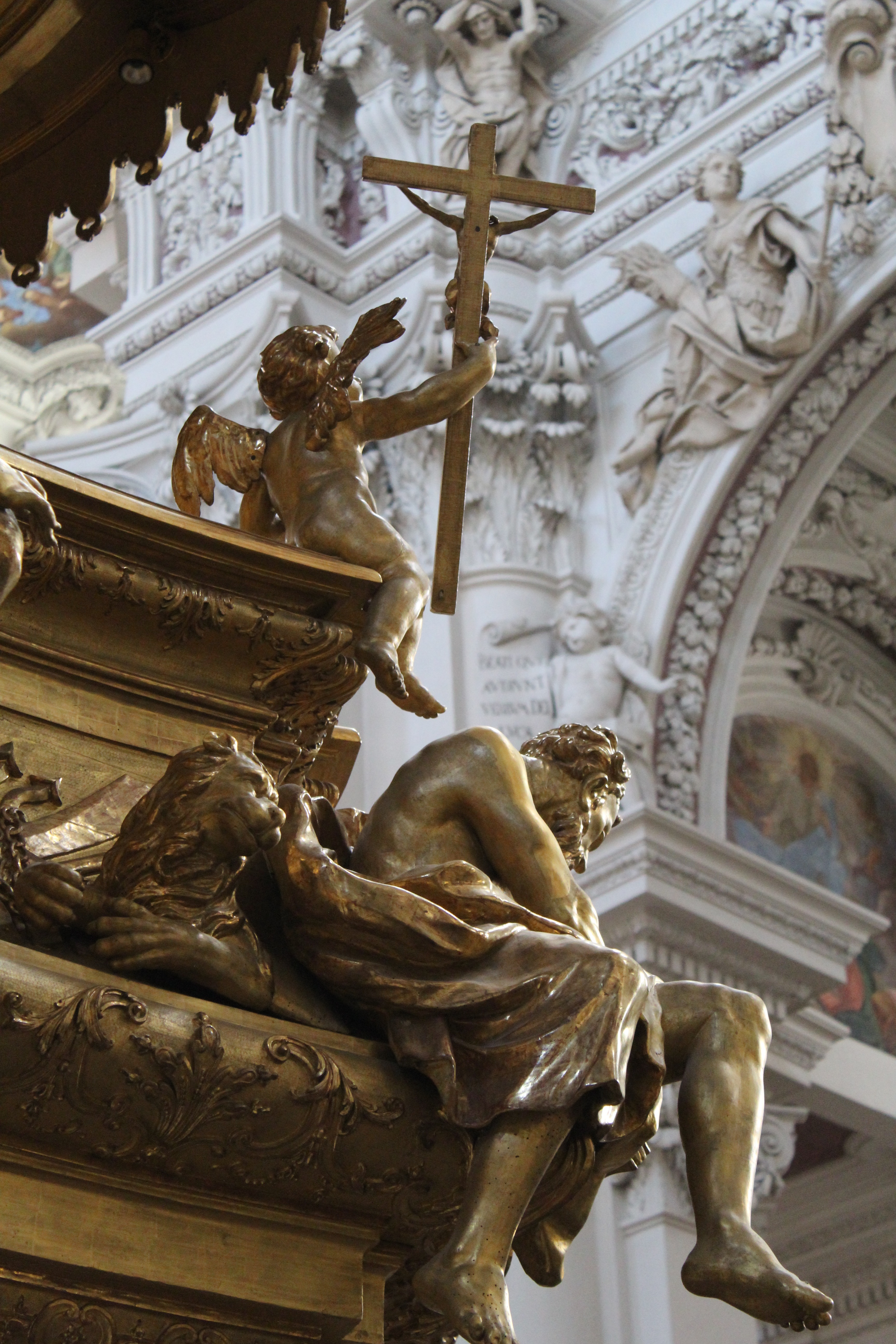 We make our way up the hill to the highest point in the town where the Cathedral of St. Stephens is located. The church is of Baroque design. It’s decorated with beautifully ornate statues, paintings, gold leaf and woodwork.