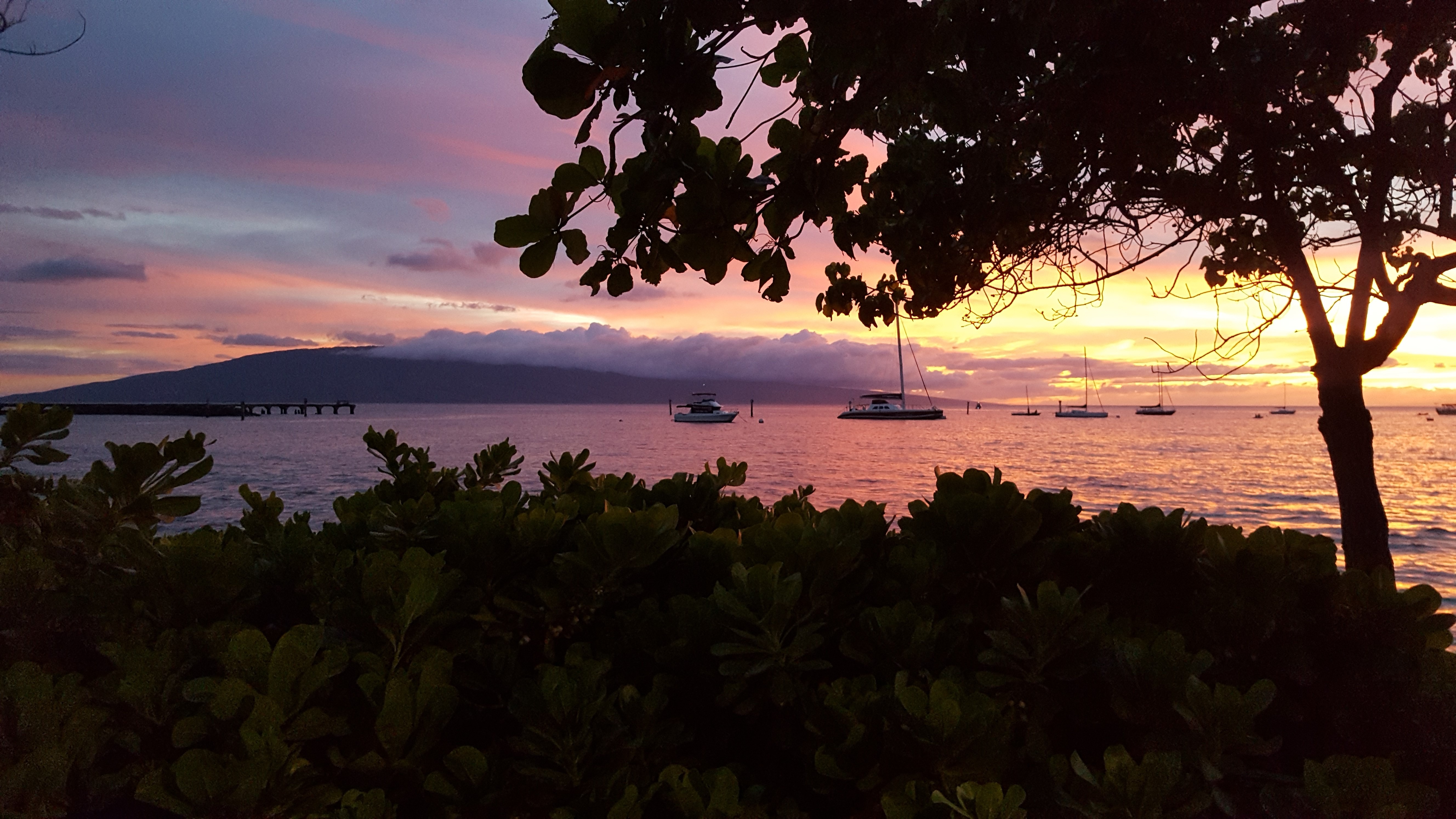 Dinner is at Frida’s Mexican. The location of the restaurant is fantastic. It sits right on the waters edge. Dining at sunset was incredible. Every color of the rainbow appeared as background for the palm trees and boat sails. We enjoy our dinner as the sun sets beyond the horizon, leaving another glorious Maui day behind. The ocean breezes intoxicate as we stroll along Lahaina’s main road.